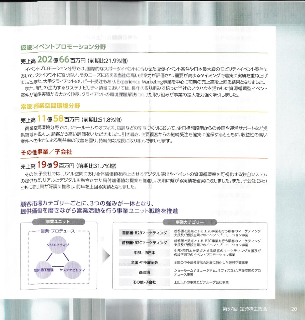 これらの情報を総合的に考慮すると、博展は今後も体験価値を重視した事業展開を通じて、成長を目指していくと考えられます。