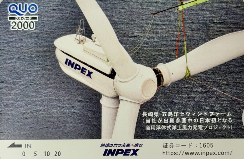 【株価優待】INPEXインペックスのオリジナルQUOカードと施設見学会(抽選)