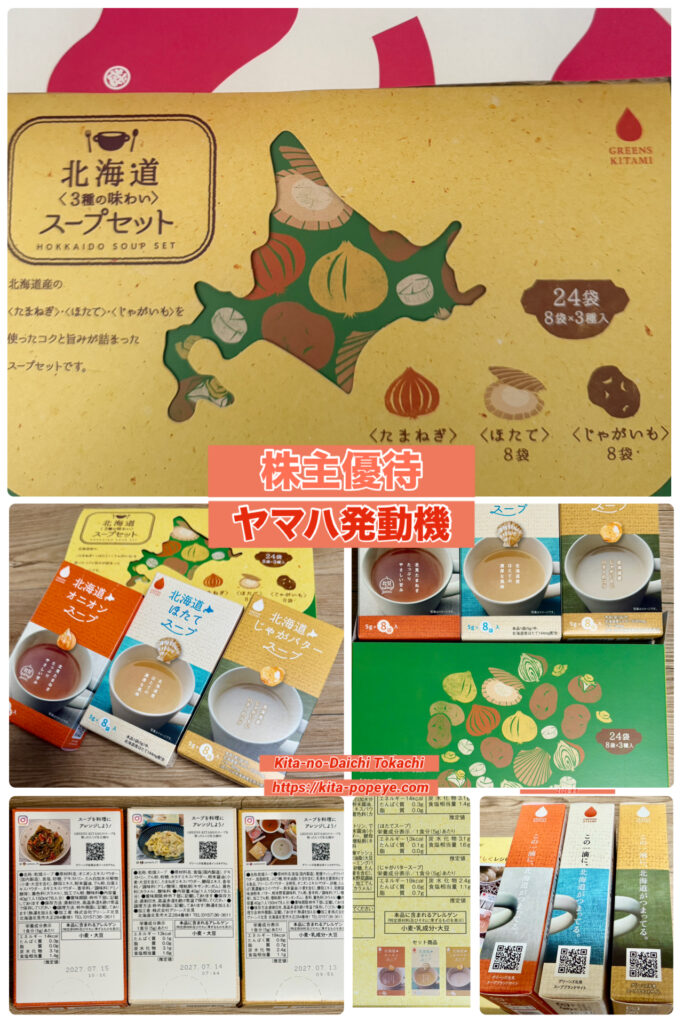 1000ポイントで選んだ「北海道スープセット」は、北海道の名産をイメージしたスープセットで、画像を見ると北海道の地図をモチーフにした可愛らしいパッケージが特徴です。