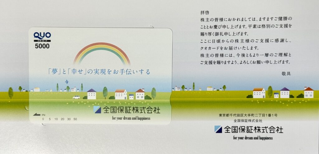 #株主優待 #全国保証 #クオカード #ZenkokuHosyo