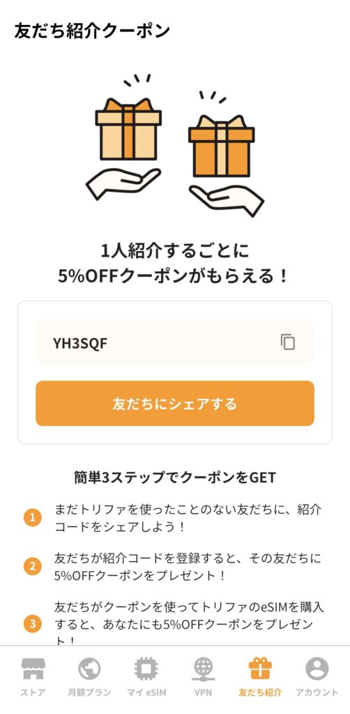 #トリファ #trifa #海外esim #紹介コード #YH3SQF