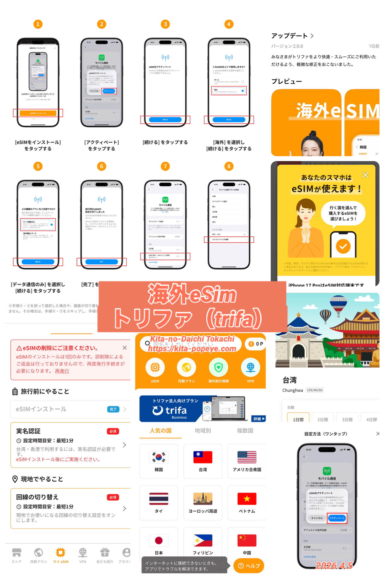トリファ(trifa)の海外eSIMは、アプリ経由で簡単に購入・設定でき、台湾プランでは実名認証(パスポート登録)もアプリ内で完了します。