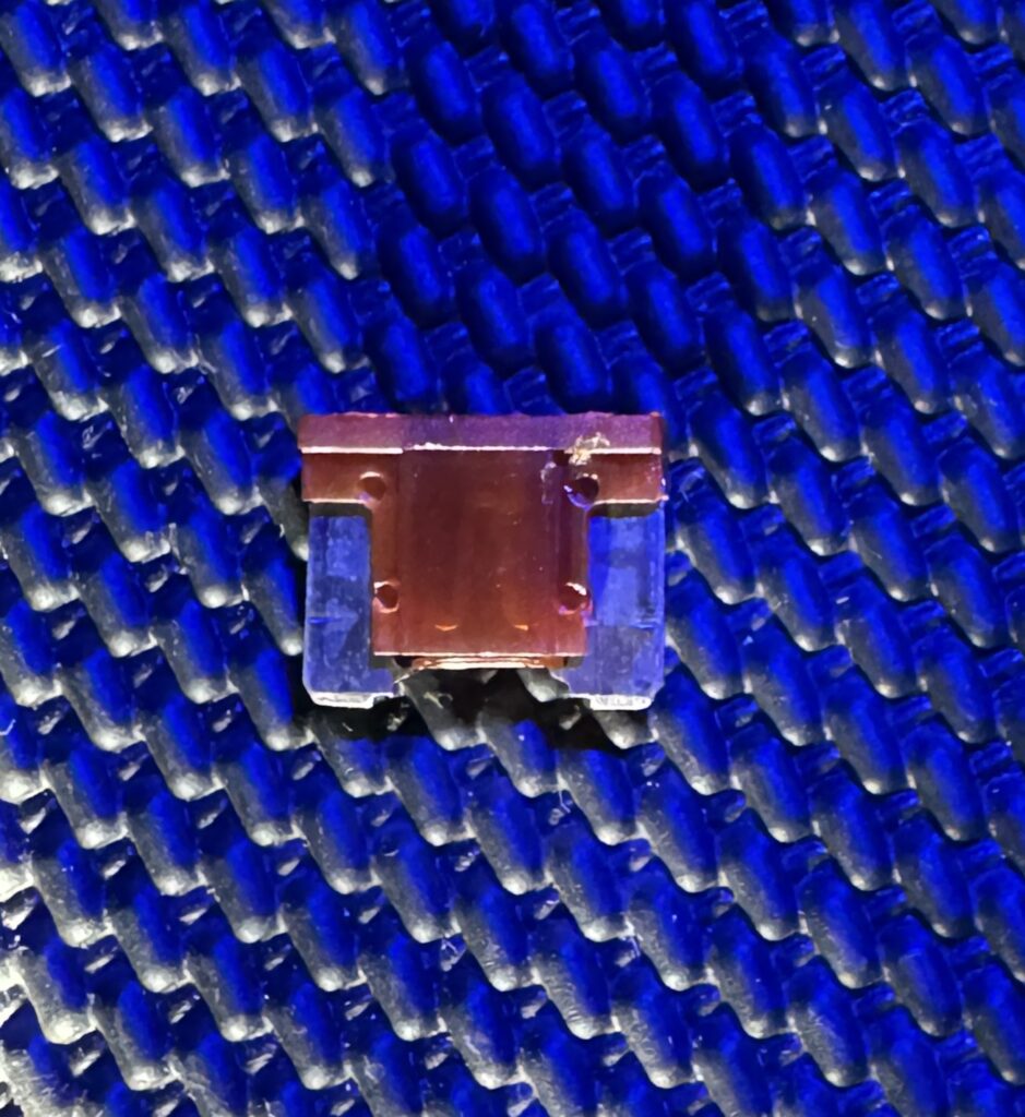写真のヒューズは、自動車用ヒューズの中で最も一般的なブレードヒューズ(平らな端子を持つヒューズ)の1つです。メジャーの目盛りから判断すると、その大きさは約11mm×16mm程度で、ミニ平型ヒューズである可能性が高いです。
