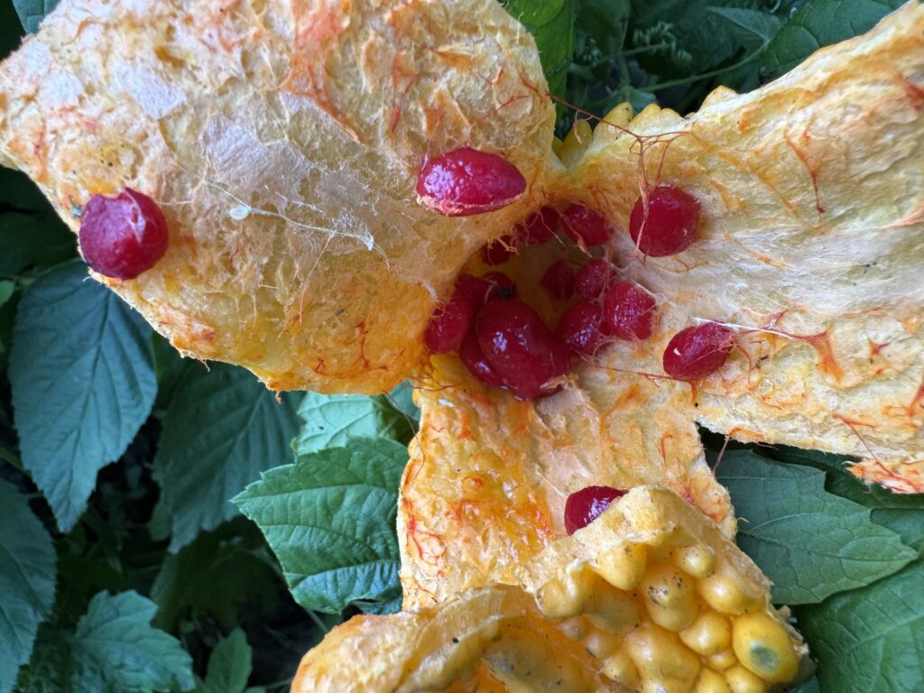 • 熟すと黄色やオレンジ色になり、中の種を覆うゼリー状の赤い部分は甘くなります。