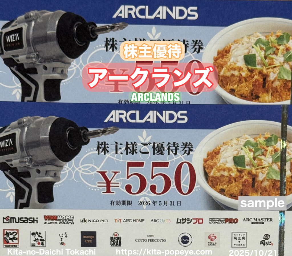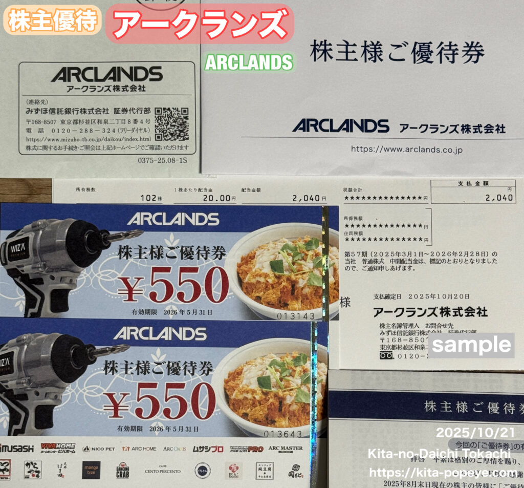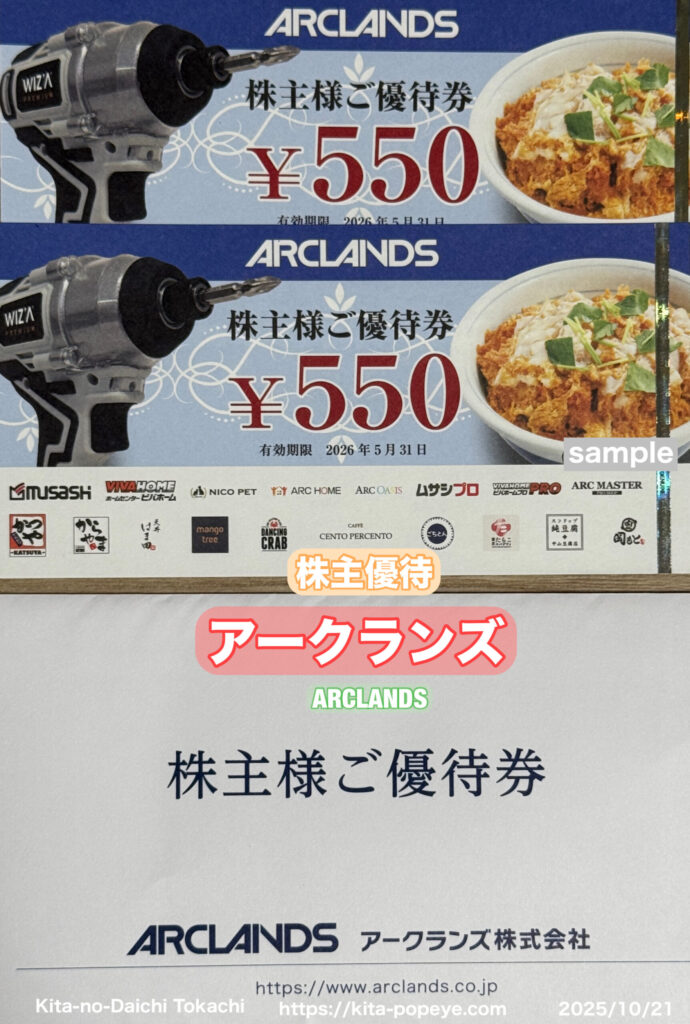 アークランズの株主優待は、アークランズグループの小売店舗および飲食店で利用できるご優待券です。