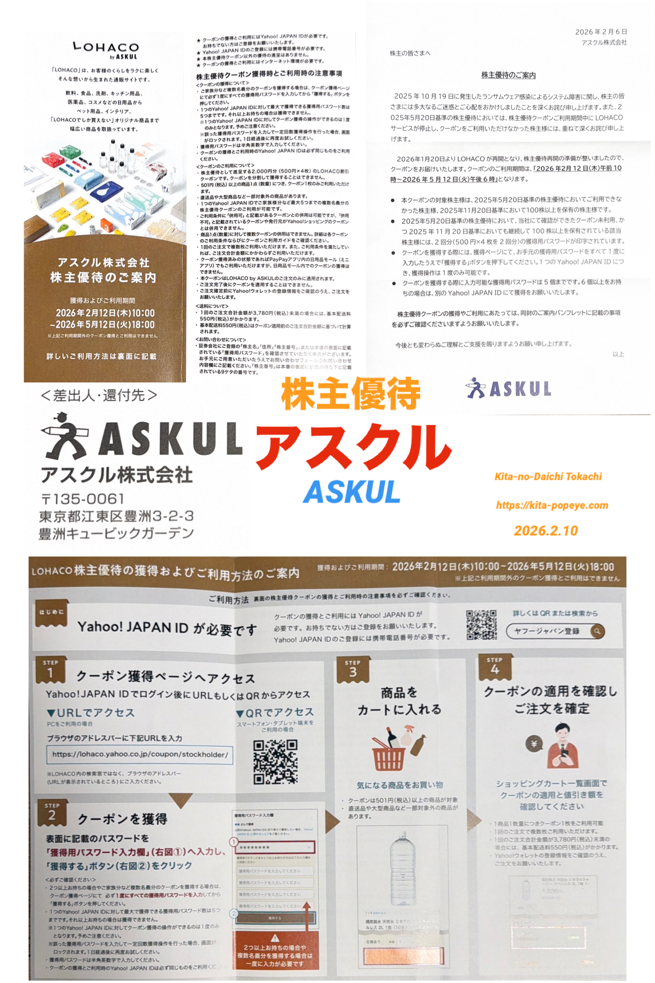 株主優待クーポンは2月12日(木)より配布開始予定