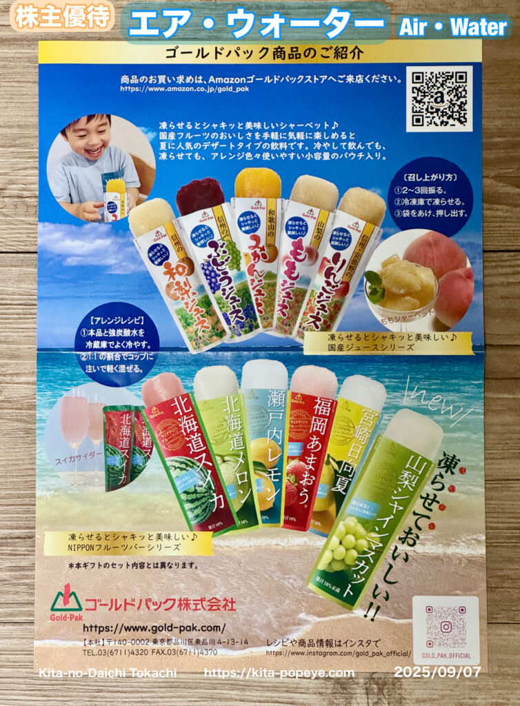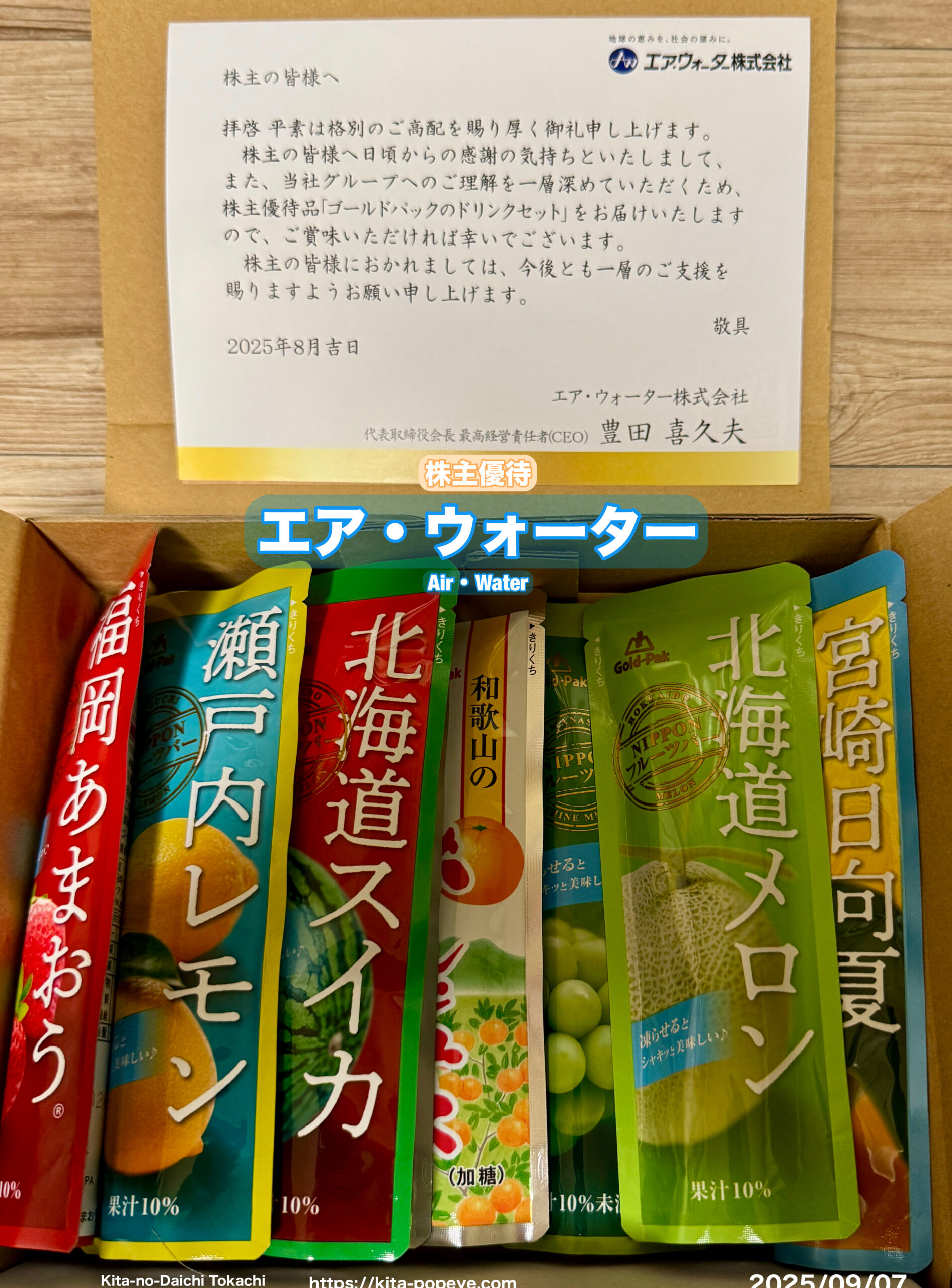 #株主優待 #エアーウオーター #AW #ゴールドパック #FRUITSBARSET