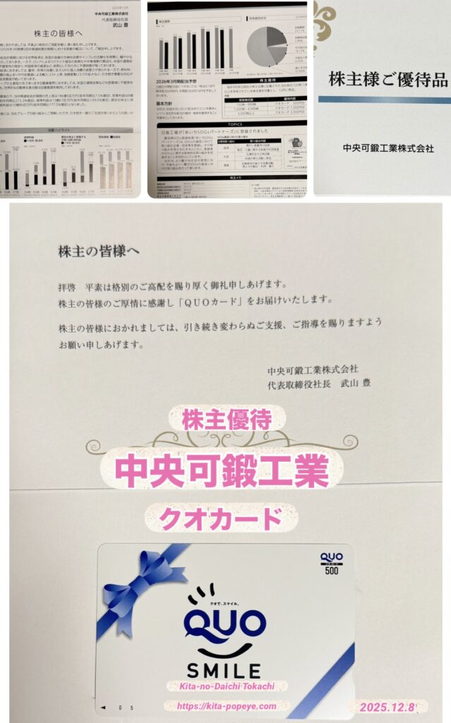 株主優待ついて 中央可鍛工業(ちゅうおうかたんこうぎょう)(5607)
