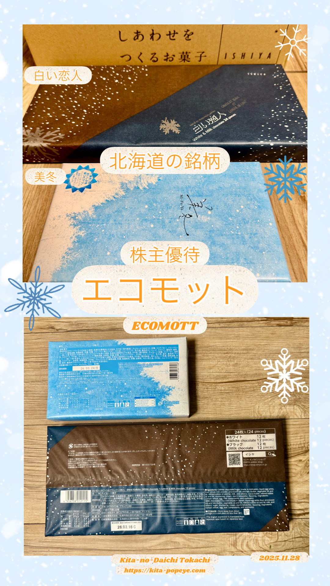 #株主優待 #エコモット #ECOMOTT #北海道銘菓 #白い恋人 #石屋製菓 #美冬