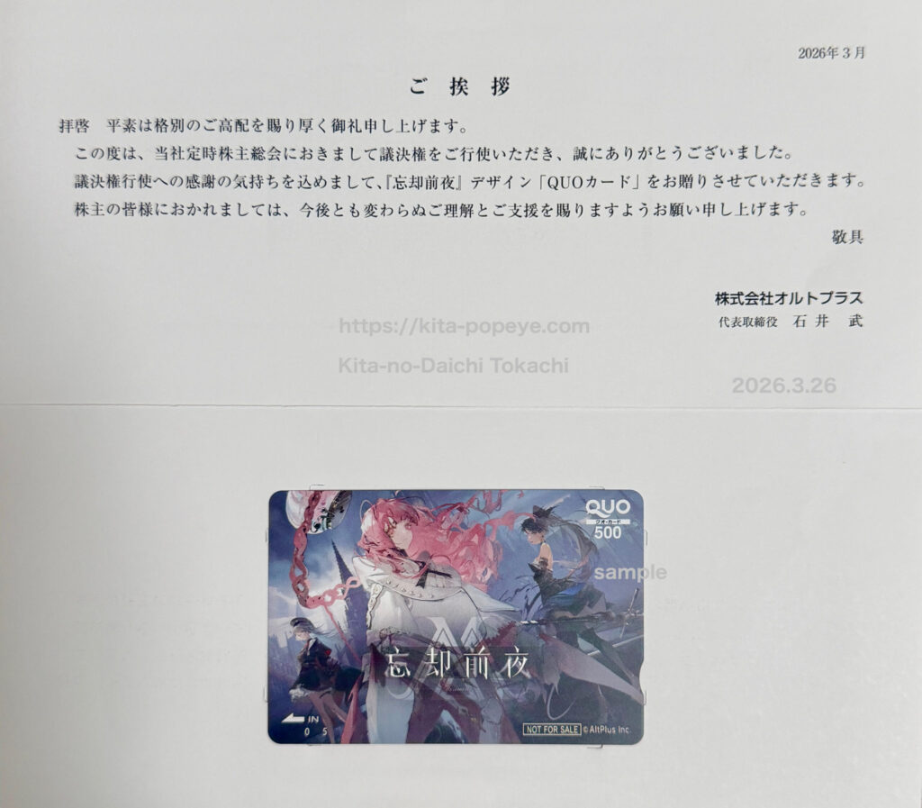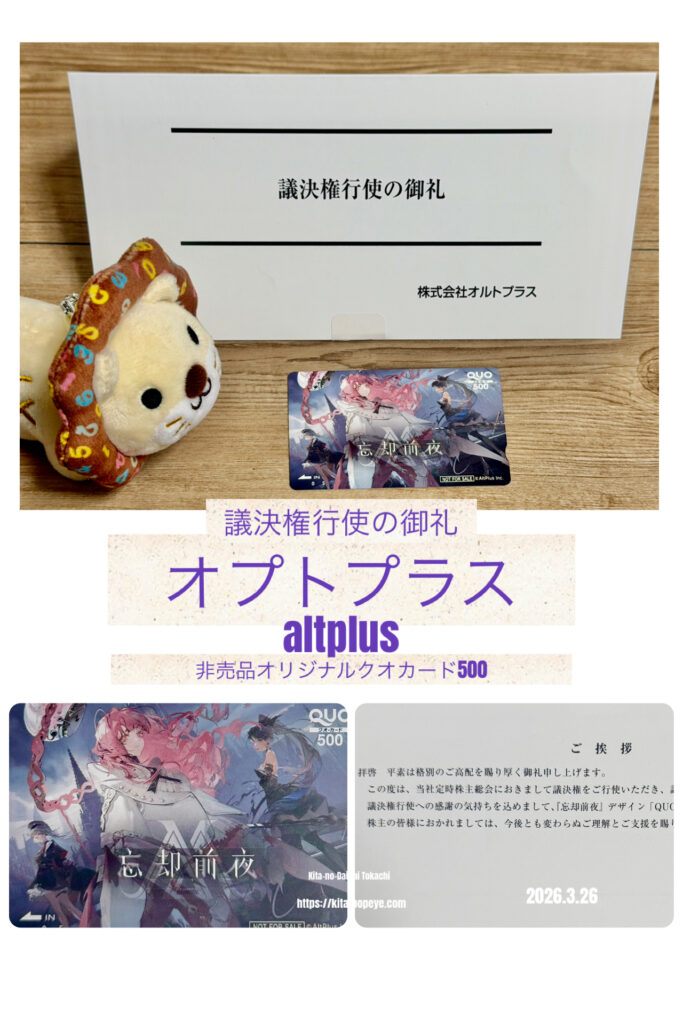 #議決権行使 #オルトプラス #altplus #クオカード #非売品オリジナルクオカード