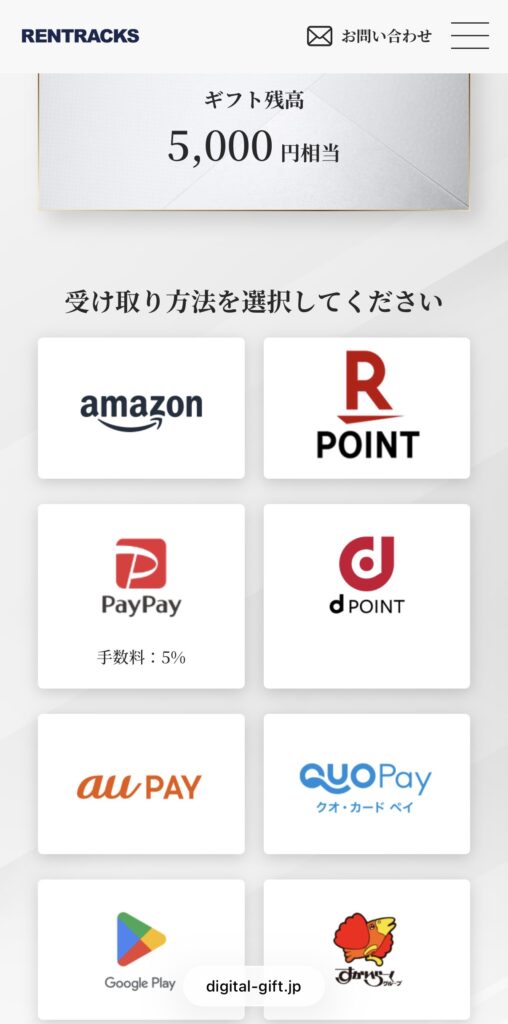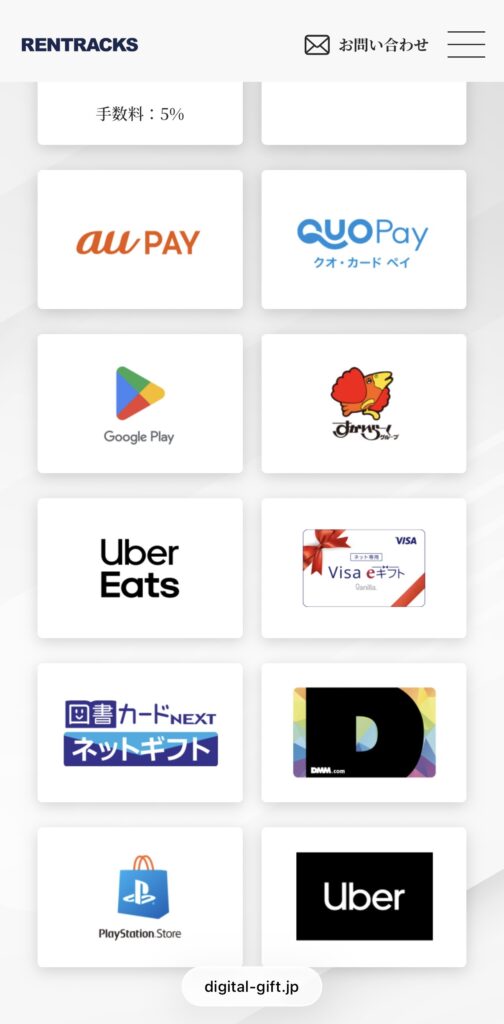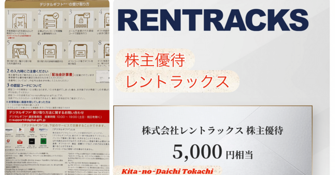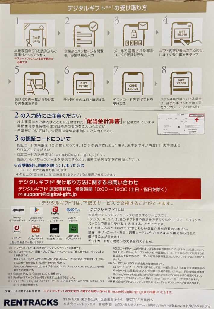 #株主優待 #RENTRACKS #レントラックス #デジタルギフト #Amazon #GooglePay #PayPay #QUOPay #dポイント #auPay #UberTaxi #UberEats