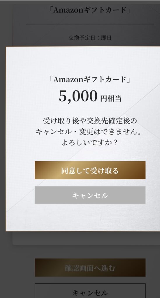 • Amazonギフトカード、QUOカードPay、PayPayマネーライト、dポイント、au PAY ギフトカードなど、複数の電子マネーやポイントサービスから選択できます。