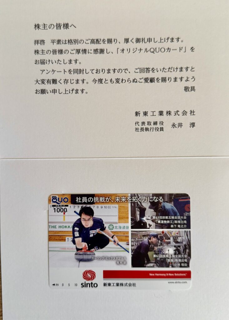 QUOカード1000円 (9月末日基準日 2024.12.9〒受取)