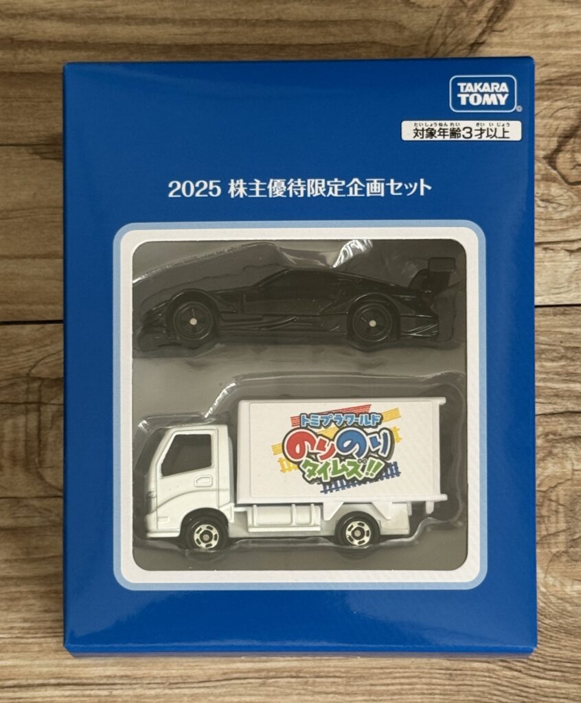 株主優待は、「オリジナルトミカ(2台)など」がもらえます。このオリジナルトミカを集めるために優待を取得しているファンがいるほど、好きな人にはたまらない特典です。