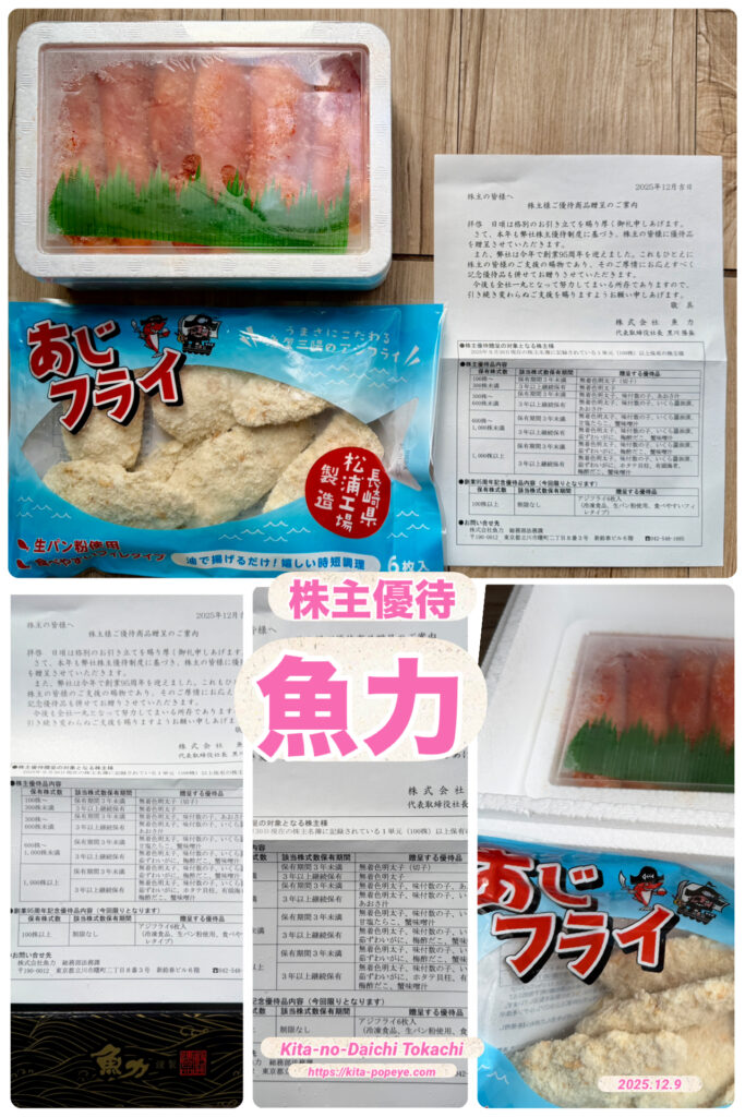 2025年度(2025年9月末権利確定)の株主優待内容は、創業95周年記念優待品として「アジフライ」が追加されています。