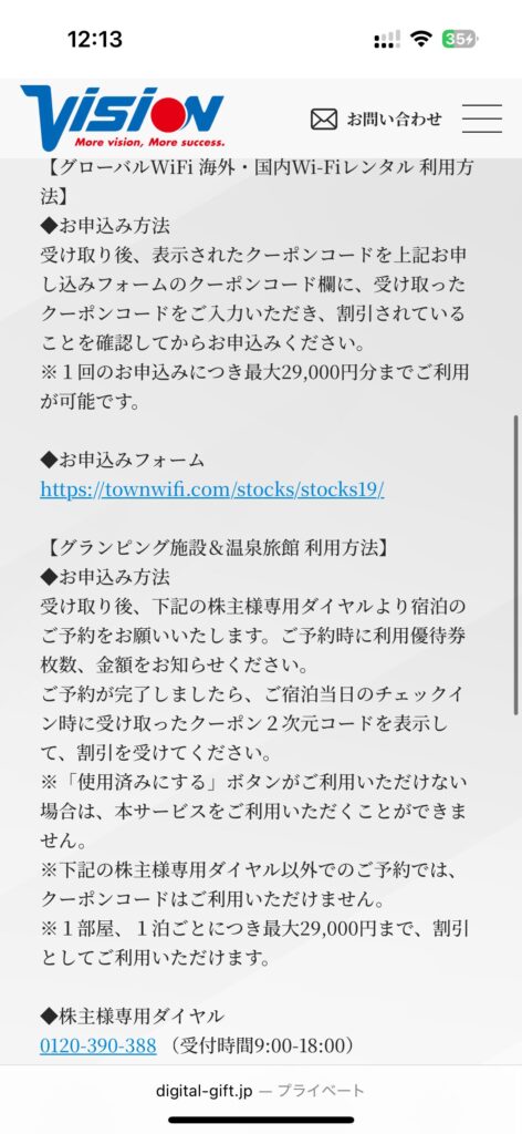 ビジョンの株主優待券を使ってグローバルWiFiを予約する手順